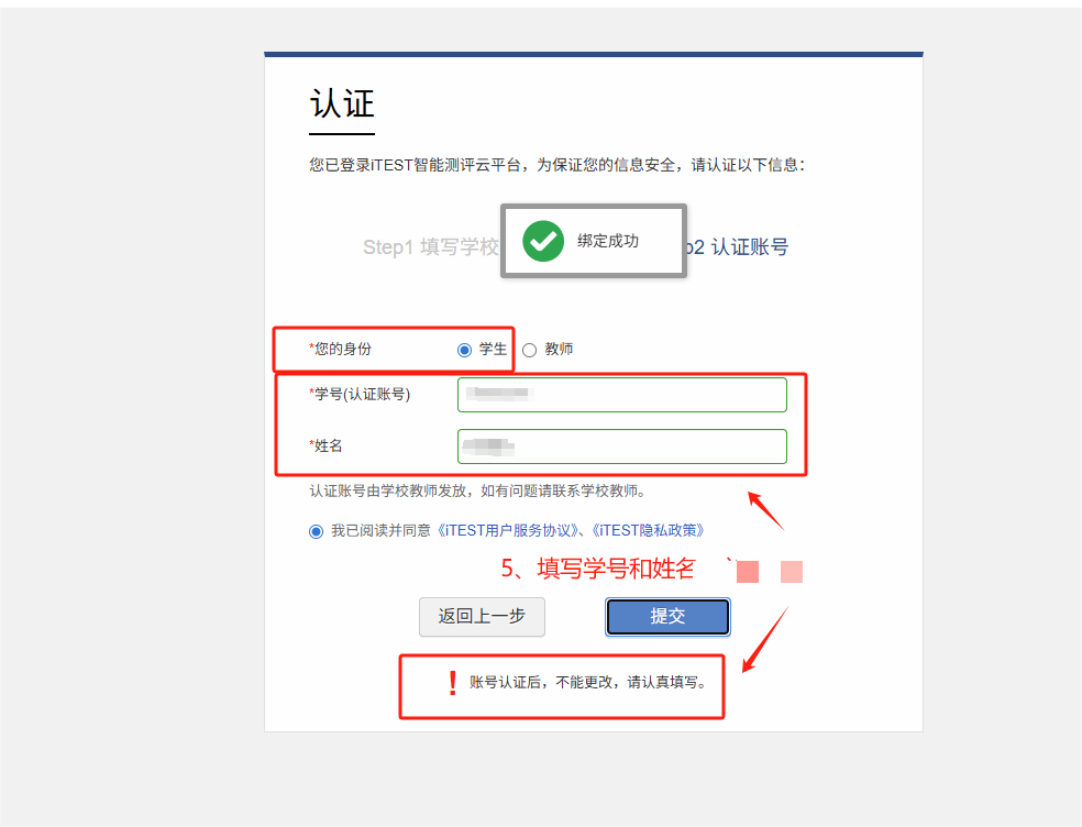 绑定成功后,重点核对学号、姓名、性别、学院(和专业名称一致即可)。校区如未显示请忽略。如果有错误,请联系班级学习委员,由学习委员统一反馈给教务老师。