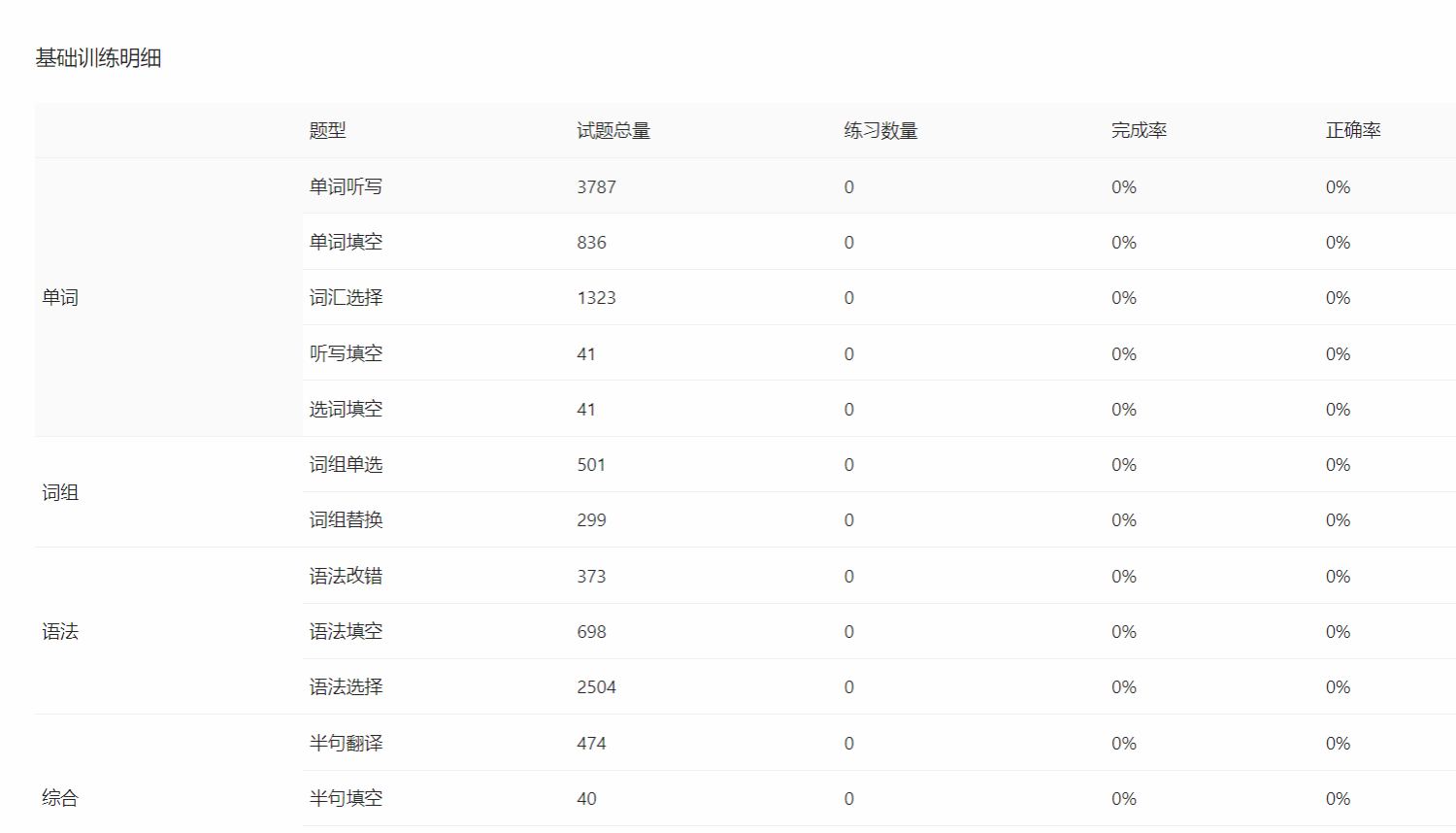 在“基础训练”中,学生可以有针对性地选择不同的题型进行训练,左侧选择题目类别,右侧选择题型,选择好后可进行答题,答错的题会自动添加至错题本以便复习回顾;在答题过程中也可以将题目添加至收藏夹。