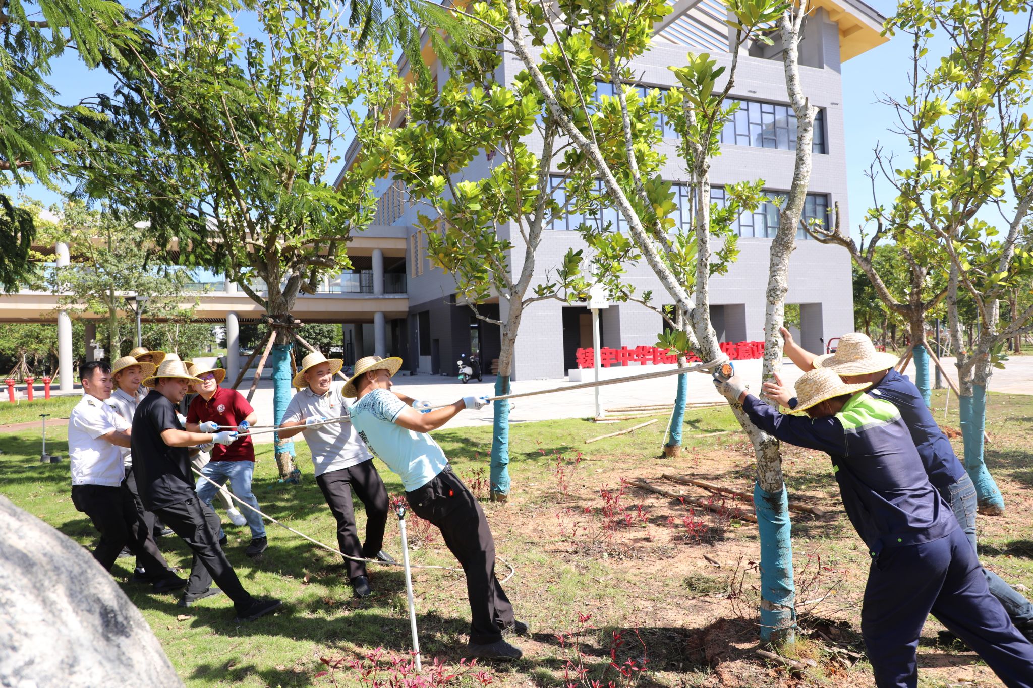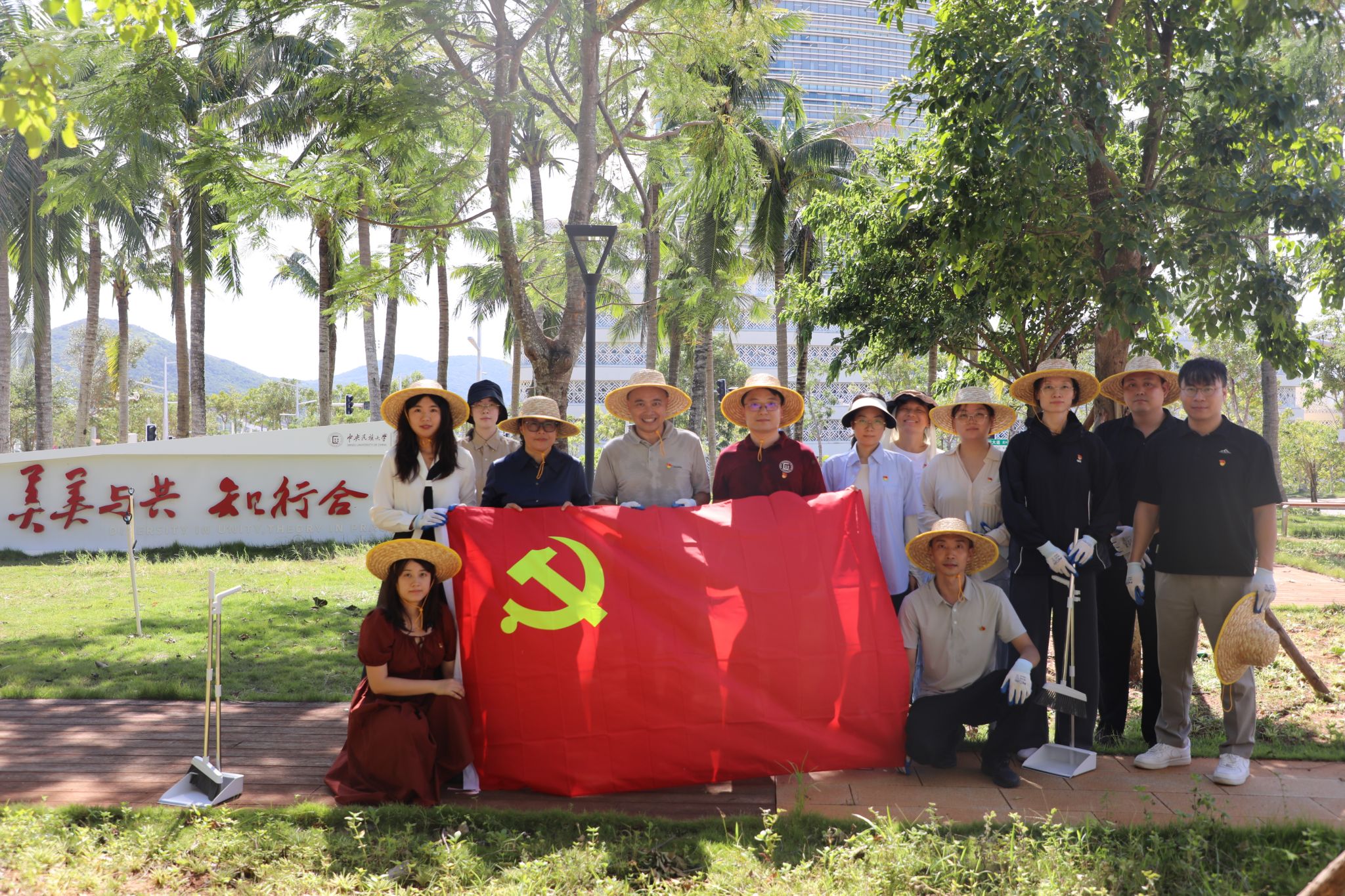 在物业公司的帮助下,同志们分组开展环境整治,重点清理各教室内积水与垃圾、扶正加固倒伏树木、清扫路面断枝残叶,并对党员之家、中华民族共同体体验馆等区域进行全面清洁维护,高效完成专享区道路清障和教学区域环境整治工作。